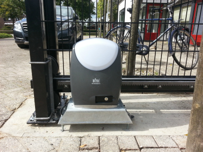 Op de Schuifpoorten van Hekbouw Drenthe kunnen vrij eenvoudig motoren gemonteerd worden, om het geheel automatisch open en dicht te laten gaan. Bij stroomuitval kan de aandrijving op eenvoudige wijze met een sleuteltje ontkoppeld worden, zodat de poort hand bediend kan worden.